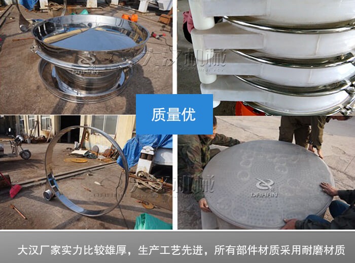 大漢廠家實力比較雄厚,生產設備的工藝比較先進,生產這款化工振動篩全部采用了先進的工藝和技術,使其生產出來的設備質量非常有保證,并且所有部件材質采用的也是耐磨材質的,可以說是目前市場上質量較好的一款振動篩設備。