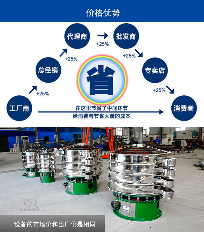 在保證設(shè)備質(zhì)量的前提下,多層旋振篩價格也是比較經(jīng)濟(jì)實惠的,為了用戶加工廠整體的效益能夠達(dá)到更大化,我們都是采用較低的價格來銷售設(shè)備的,設(shè)備的市場價和出廠價是相同的,具體價格請點擊在線咨詢獲取。