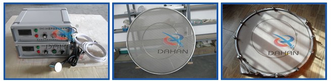 超聲波旋振篩是將220V、50Hz電能轉化為38KHz的高頻電能,輸入超聲波換能器,將其變成38KHz機械振動,從而達到篩分和清網的目地,使微細粉篩分成為易事。