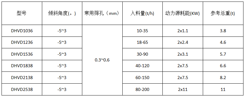 脫水振動篩參數表: