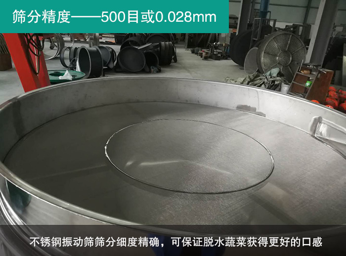 脫水蔬菜作為一種可食用的物料,對其口感有一定的要求,口感對應的是篩分精度。不銹鋼振動篩作為一種高精度篩分設備,篩分細至500目或0.028mm,篩分精度滿足脫水蔬菜行業的篩分需求。